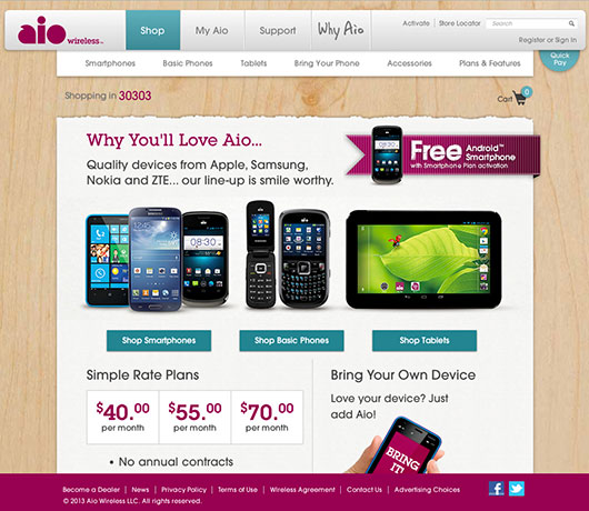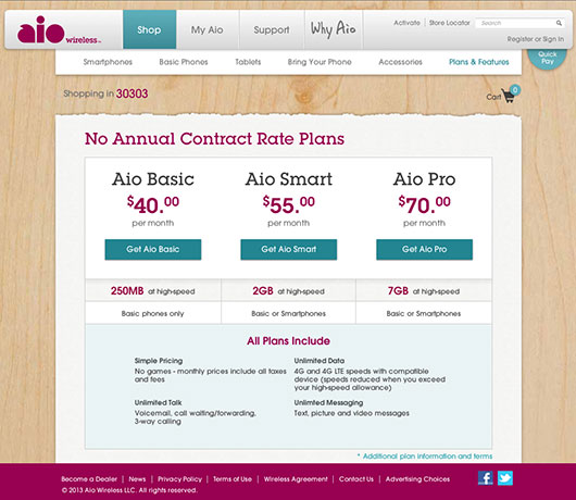 Aio Wireless is AT&T's prepaid subsidiary mobile carrier. I provided the HTML and CSS maintenance updates to this site.